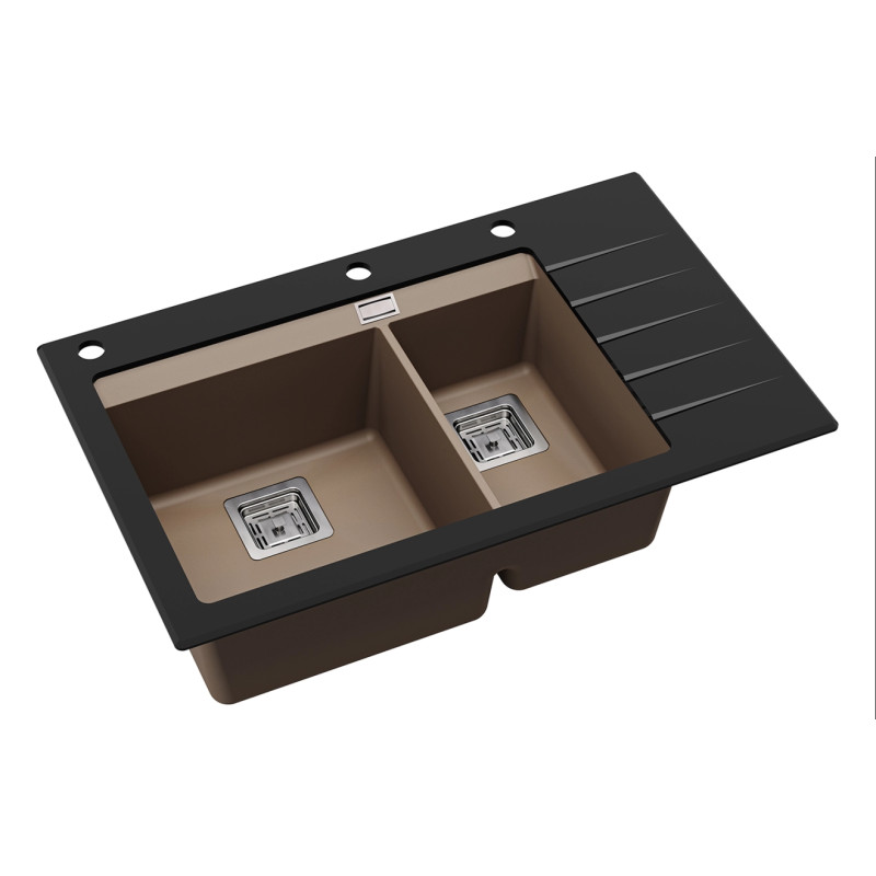 Теги: Каменная, кухонная, мойка, Aquasanita, Delicia Plus, GQD150B-AW, Warm Mocha 114, Коричневый, черное стекло