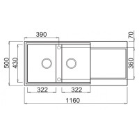 Размер мойки - 1160 мм х 500 мм