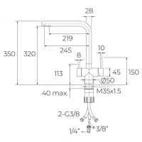 - Гибкие шланги для подключения длиной 350..