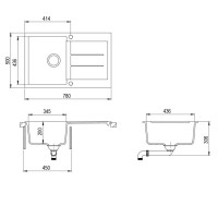 Размеры мойки - 780 мм х 500 мм