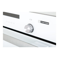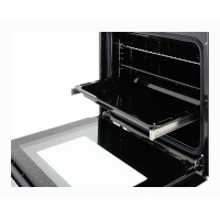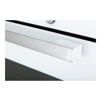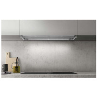 Витяжка Falmec DOWNDRAFT 90 Vetro bianco проводиться з нержавіючої сталі. У непрацюючому стані модель виглядає як смуга глянцевого чорного скла позаду..