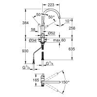 Одноважільний змішувач GROHE Minta для кухні - це ясне поєднання професійної роботи і чудового дизайну. Зручний і потужний, силует цього змішувача іде..